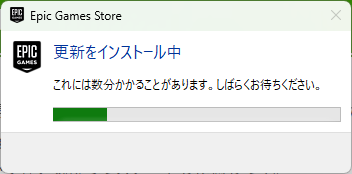 ランチャーのインストール時は下記のようなウィンドウが開きます。数分でおわりましたが完了まで待ちます。また、アプリの更新確認のポップアップが出た場合は、「はい」を選択してインストールを進めます。